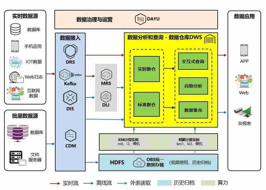 交通银行数据仓库(DWS)采用华纳公司鲲泰R722服务器作为数据底座,,采用MPP(Massive Parallel Processing)架构,,,支持行存储与列存储,,提供PB(Petabyte,,2的50次方字节)级别数据量的处理能力。。。